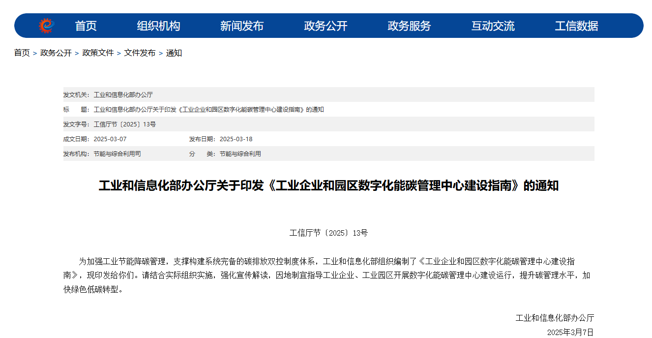 工業(yè)和信息化部于2025年3月正式印發(fā)《工業(yè)企業(yè)和園區(qū)數(shù)字化能碳管理中心建設(shè)指南》(工信廳節(jié)〔2025〕13號(hào)),為能碳管理系統(tǒng)的建設(shè)提供了國(guó)家標(biāo)準(zhǔn)指導(dǎo)。
