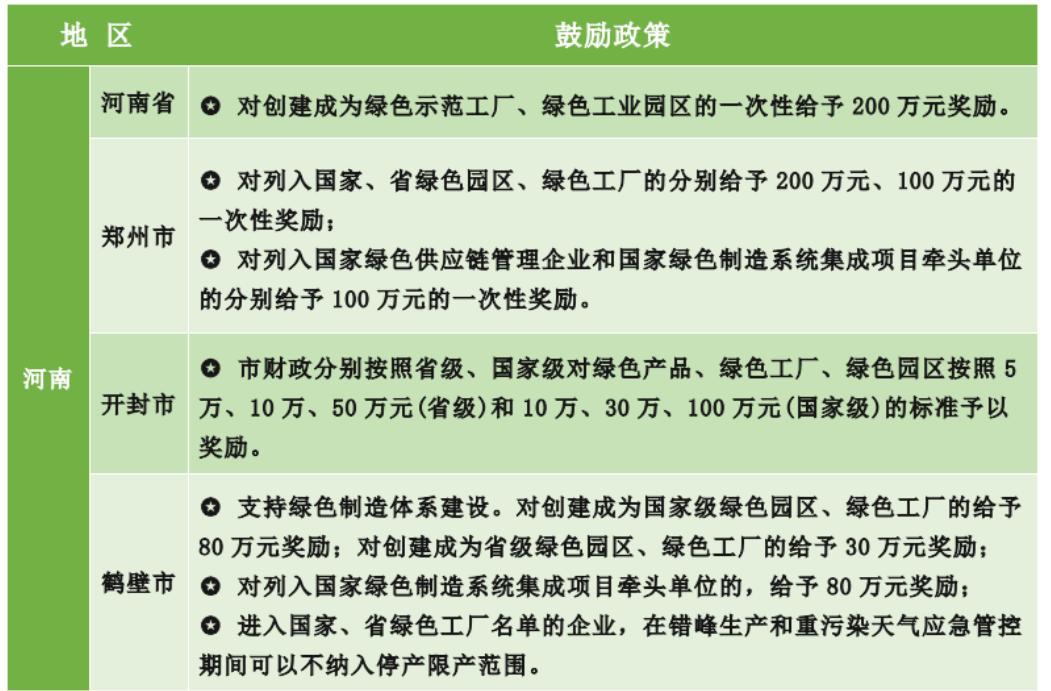 濟源市:對新認定為省級綠色工廠的企業(yè)給予20萬元的一次性獎勵。